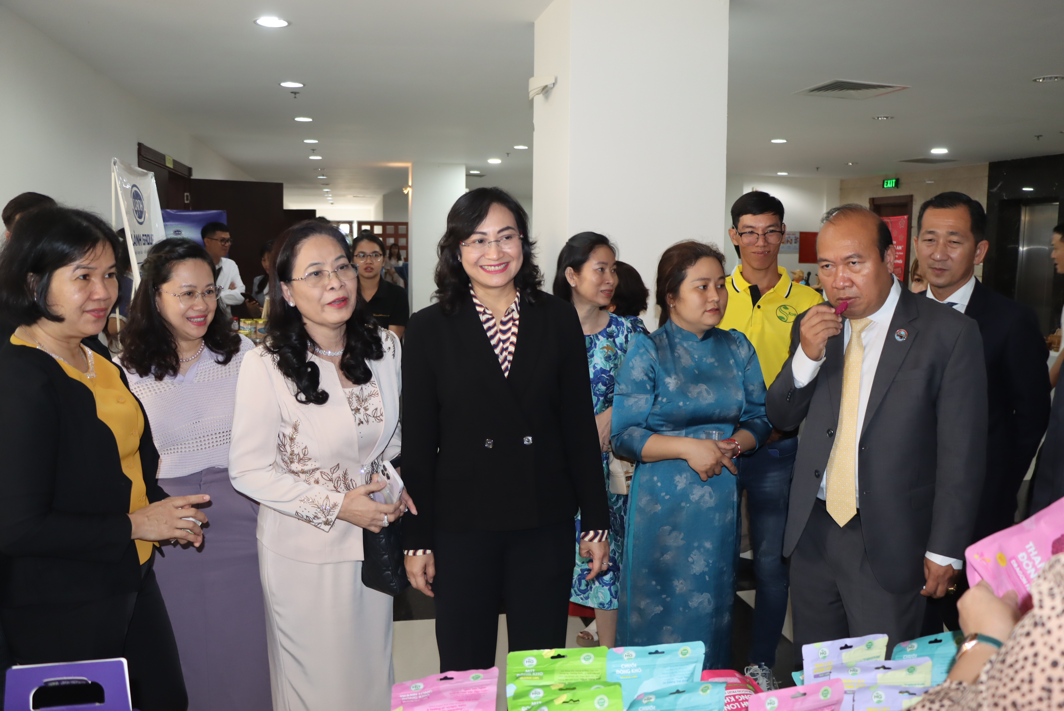 Ông Nguyễn Anh Sơn, Cục trưởng Cục Xuất nhập khẩu, Bộ Công Thương Việt Nam thăm gian hàng trưng bày yến chưng