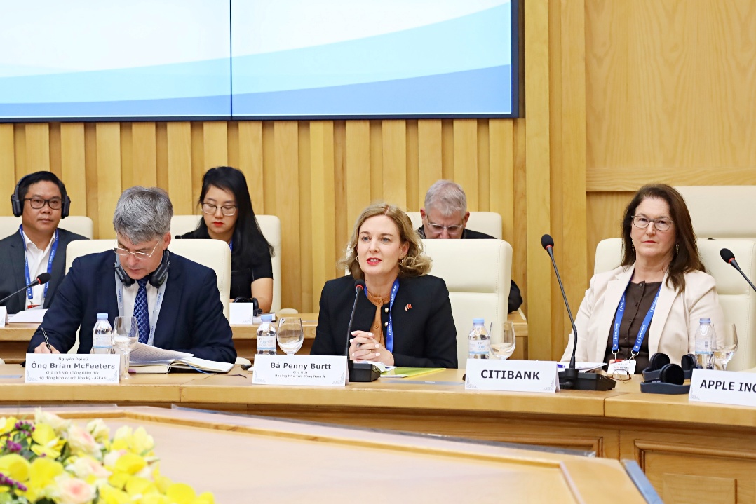Đại diện cộng đồng doanh nghiệp Hoa Kỳ đánh giá cao tiềm năng và môi trường đầu tư của Việt Nam, đồng thời kiến nghị nhiều nội dung cụ thể liên quan đến năng lượng, công nghiệp công nghệ cao, logistics, thương mại, tài chính, y tế, nông nghiệp và hàng tiêu dùng. Nổi bật là các đề xuất về phát triển thị trường LNG, điện khí, năng lượng tái tạo, cơ chế mua bán điện trực tiếp (DPPA), cũng như hoàn thiện khung khổ chính sách đối với các lĩnh vực công nghệ, chuỗi cung ứng và kinh tế số.