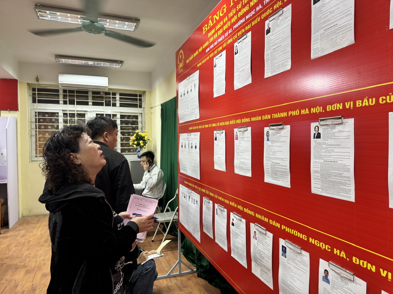 Tại xã Ngọc Hồi (Hà Nội), ngay từ sớm, nhiều chị em phụ nữ đã có mặt tại các điểm bỏ phiếu với tinh thần nghiêm túc, trách nhiệm và tin tưởng vào sự lựa chọn của mình. Hình ảnh những người phụ nữ trong tà áo dài truyền thống, cầm lá phiếu trên tay thể hiện rõ ý thức chính trị và sự quan tâm tới các vấn đề của địa phương.