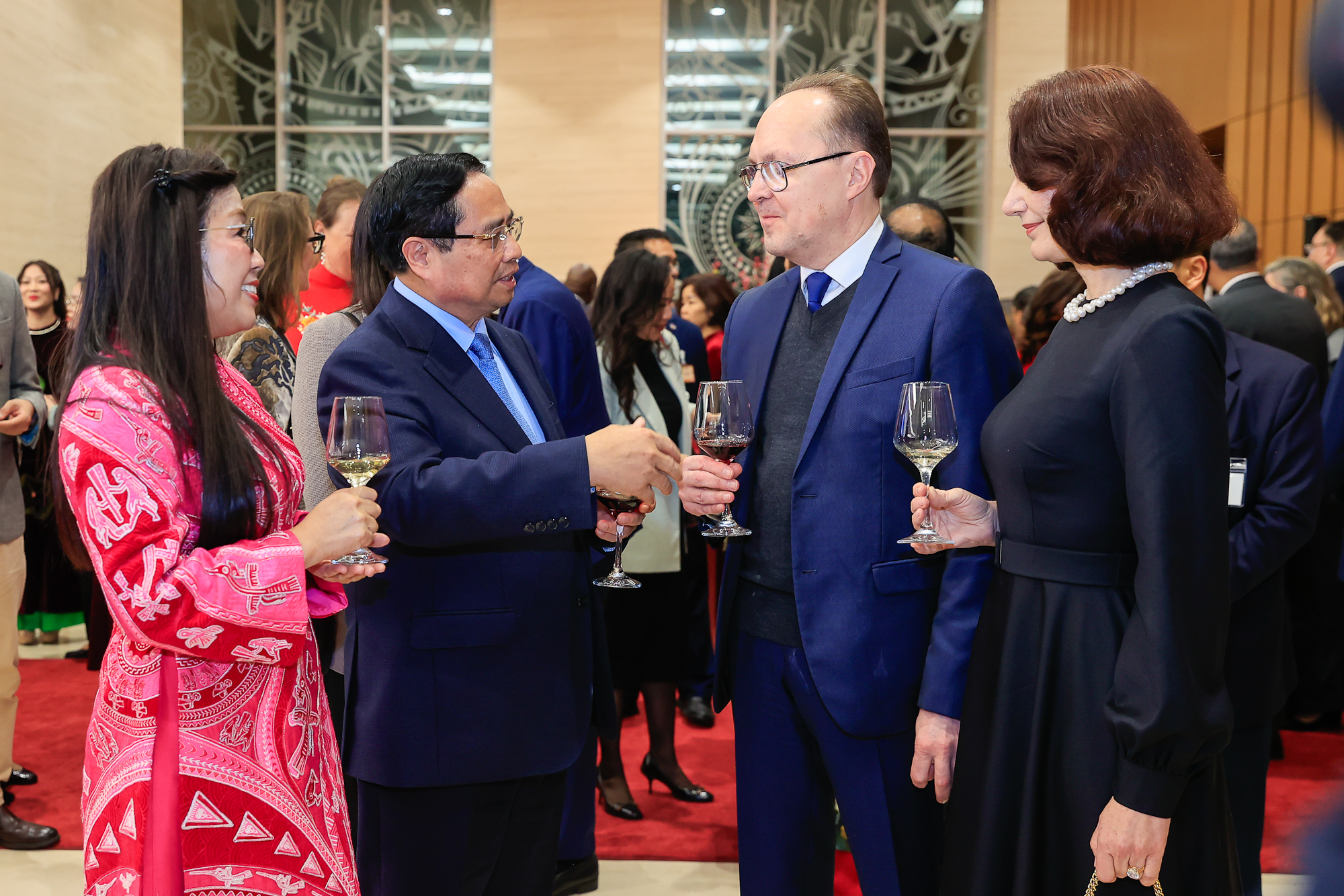 Phát biểu tại sự kiện, thay mặt đồng chí Tổng Bí thư Tô Lâm, các đồng chí Lãnh đạo Đảng, Nhà nước và Nhân dân Việt Nam, Thủ tướng Phạm Minh Chính gửi tới các vị Đại sứ, Trưởng đại diện các tổ chức quốc tế cùng toàn thể quý vị đại biểu, khách quý lời chào trân trọng, lời thăm hỏi ân cần và lời chúc mừng tốt đẹp nhất.