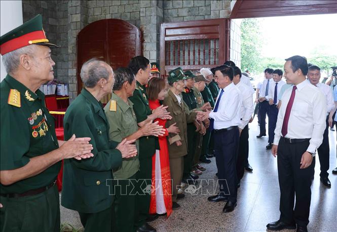 Thường trực Ban Bí thư Trần Cẩm Tú cùng các cựu chiến binh tại Nghĩa trang Liệt sĩ quốc gia A1 - Ảnh: TTXVN
