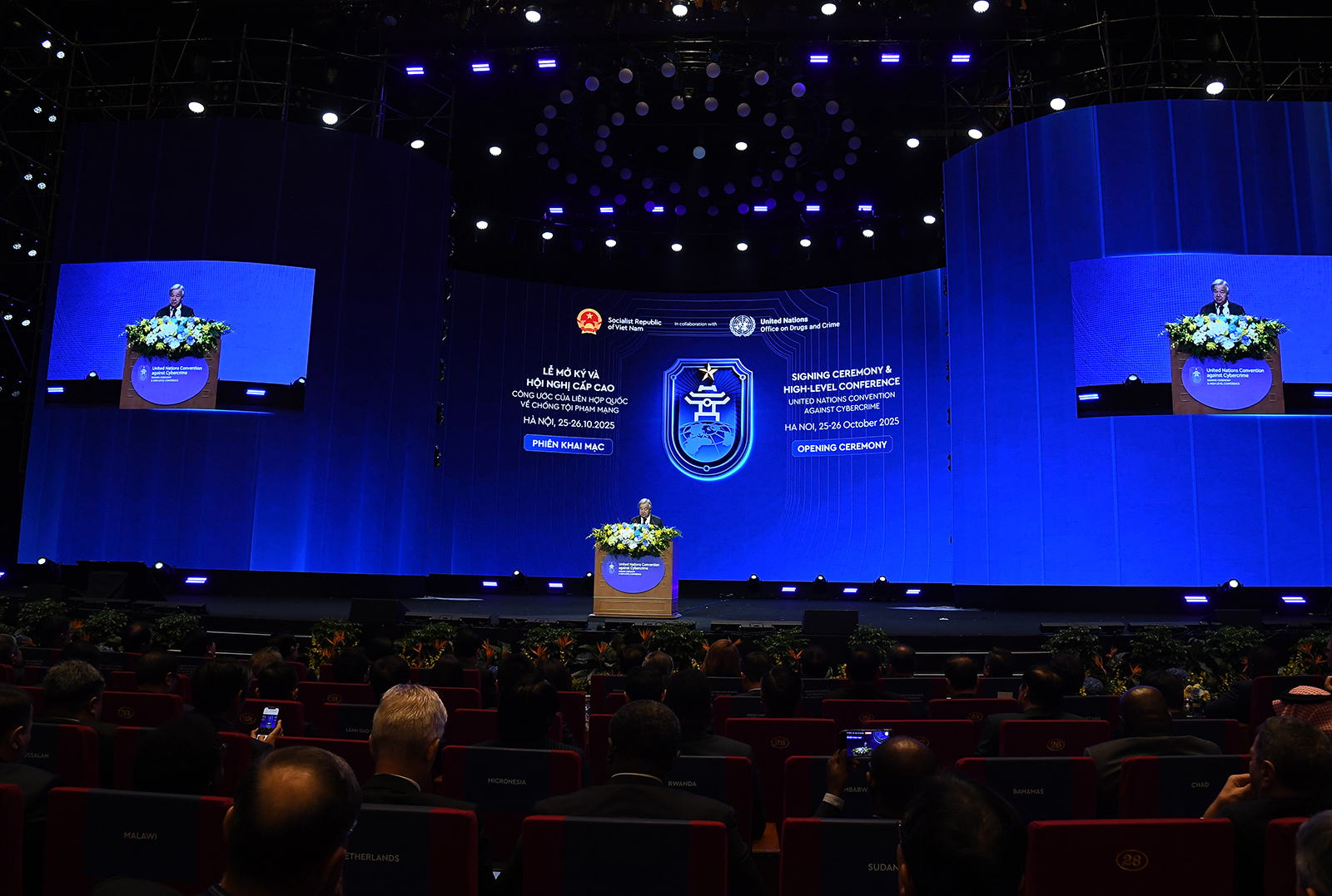 Phát biểu tại Lễ mở ký, thay mặt cho Nhà nước và Nhân dân Việt Nam, Chủ tịch nước Lương Cường nhiệt liệt chào mừng các đại biểu đến với Thủ đô Hà Nội - Thành phố vì Hòa bình, để tham dự Lễ mở ký Công ước Liên hợp quốc về chống tội phạm mạng - một sự kiện mang ý nghĩa lịch sử, khởi đầu cho kỷ nguyên hợp tác toàn cầu về không gian mạng.