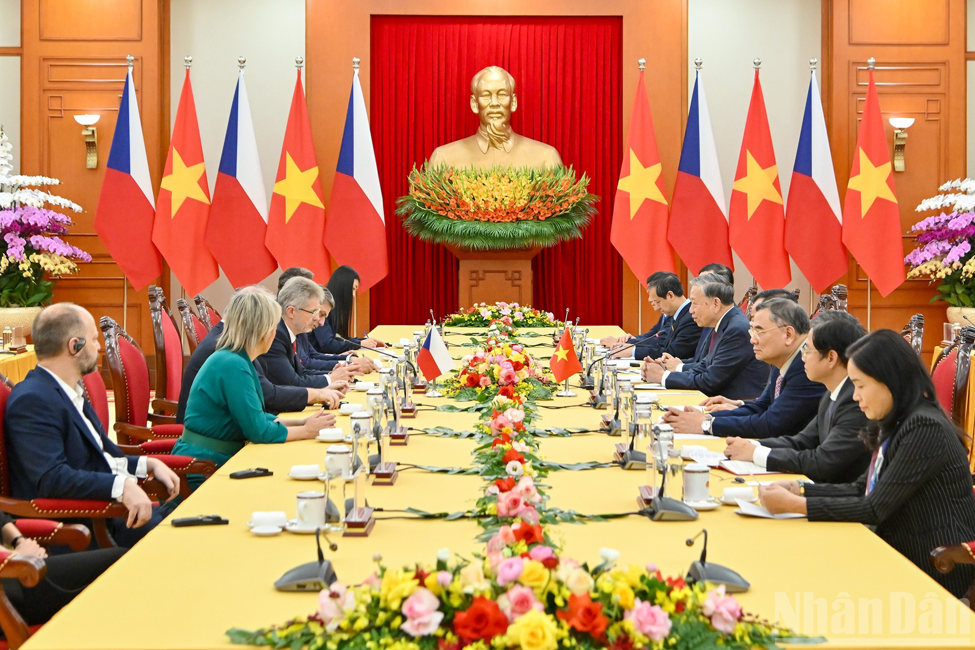Tổng Bí thư Tô Lâm bày tỏ hài lòng trước những bước phát triển tích cực của quan hệ Việt Nam - Cộng hòa Czech trong thời gian qua - Ảnh: Báo Nhân dân