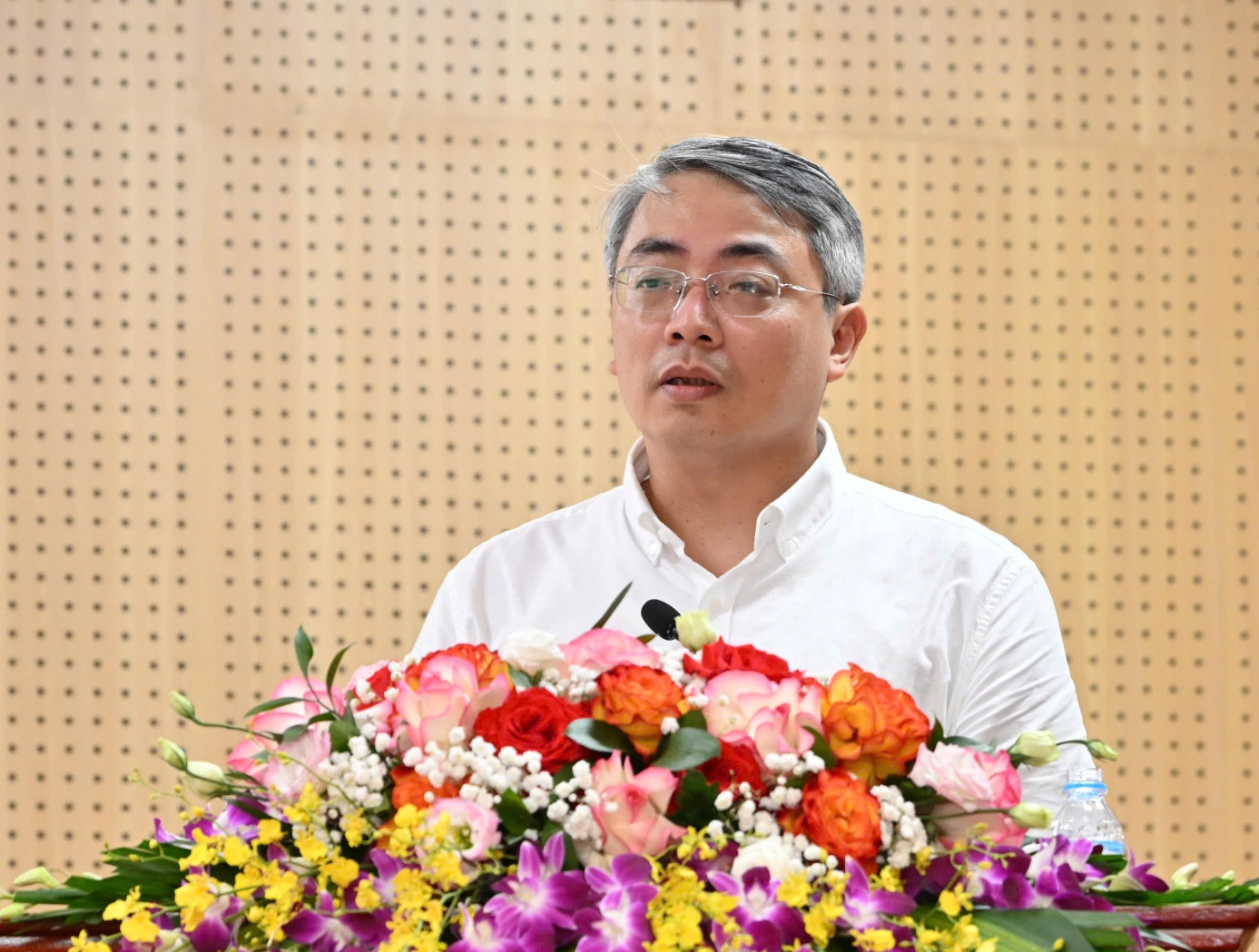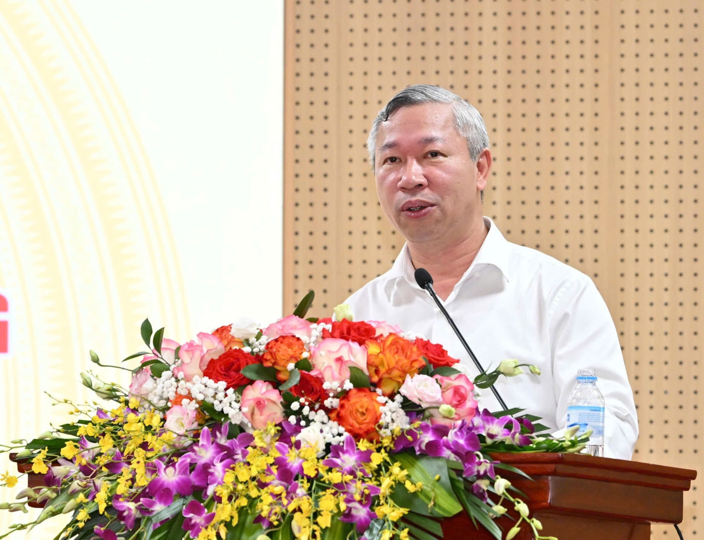 Đồng chí Trần Quang Huy - Vụ trưởng Vụ Tổ chức cán bộ - báo cáo tại Hội nghị